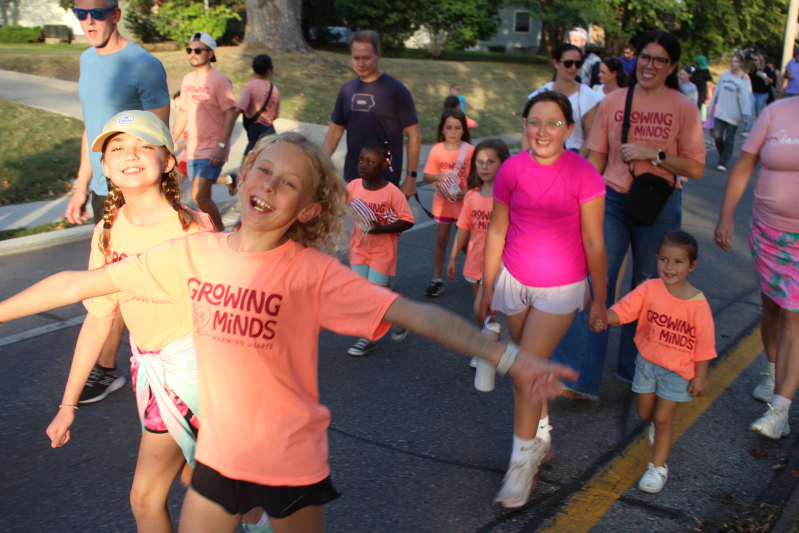 - Business or family name on a sign in the “donor dash” along Urbandale Avenue on the day of Walkathon.